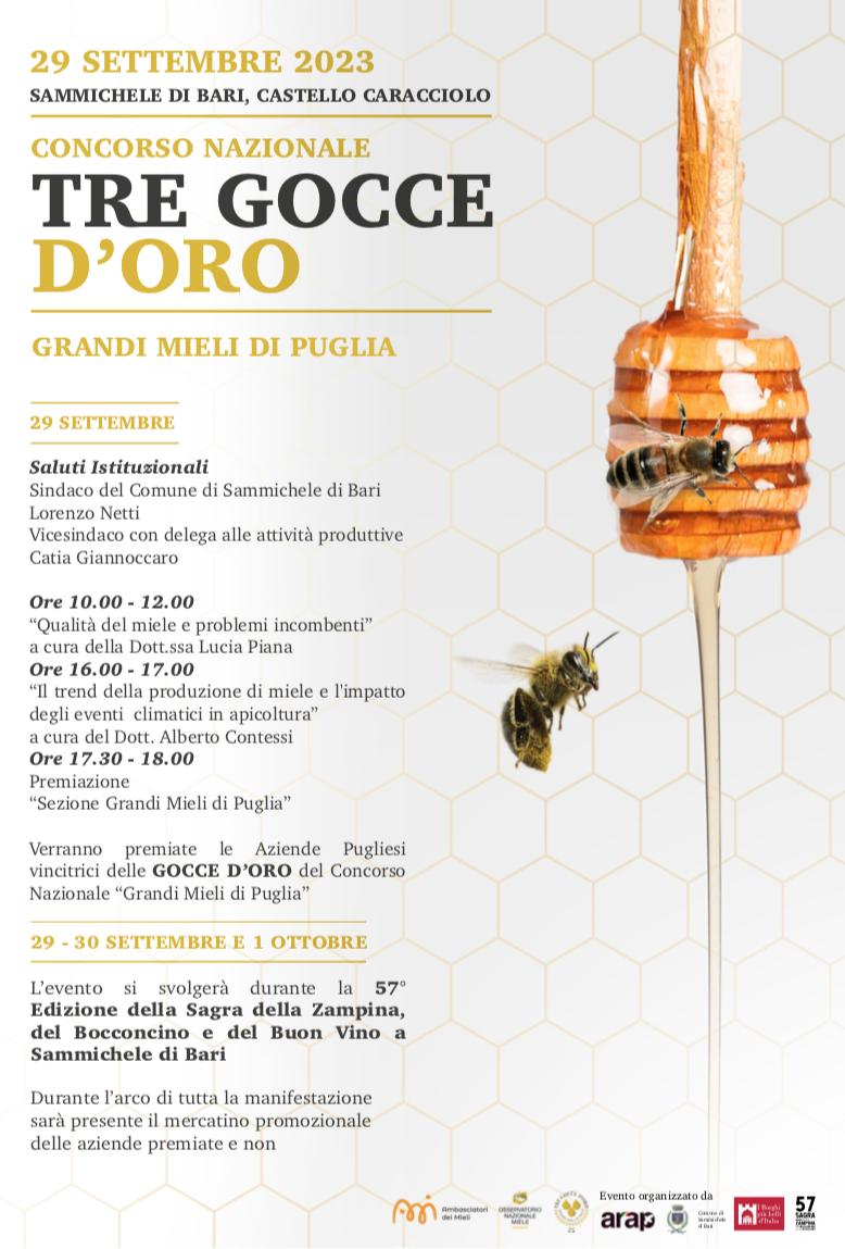 - VENERDI’ 29 SETTEMBRE – SAMMICHELE DI BARI – PREMIAZIONE GRANDI MIELI DI PUGLIA